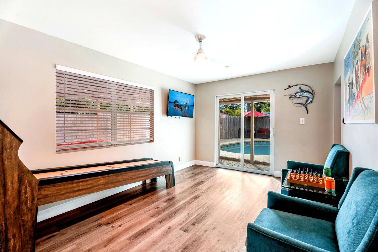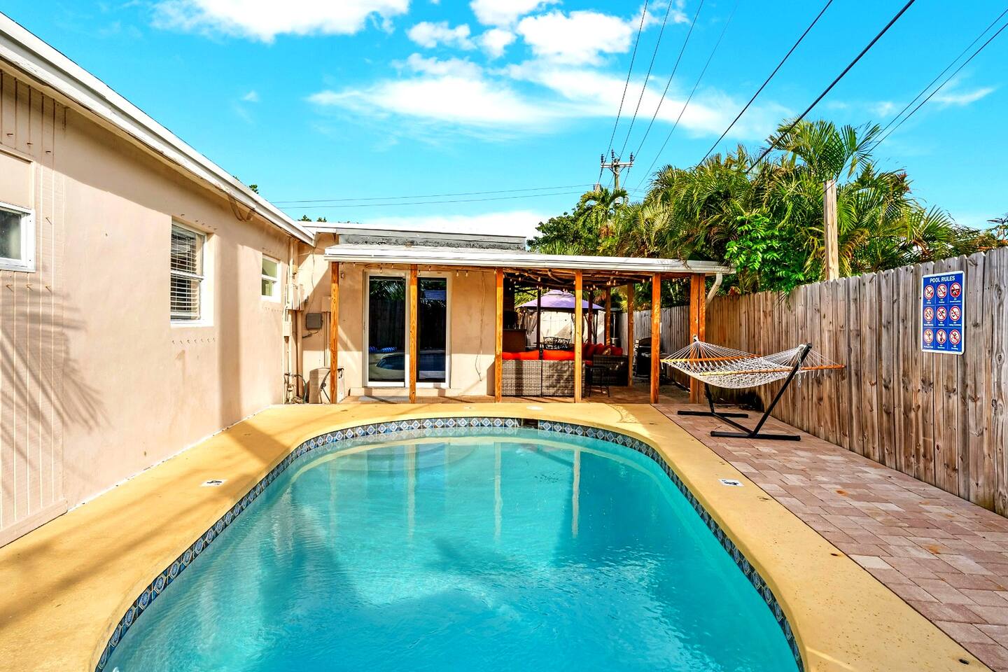 π‘ Key Features: π Prime Location β 9-Min Drive to Pompano Beach β 15-Min Drive to Boca Raton & Fort Lauderdale β 25-Min Drive to Hollywood, FL π Spacious Accommodations β Sleeps 12 β Master Bedroom β King Bed + Pack n Play Crib β Second Bedroom β Two Double Beds β Third Bedroom β One Double Bed β Fourth Bedroom β King Bed + Workstation πΏ Comfortable & Modern Bathrooms β 2 Full Bathrooms + Outdoor Half Bath β Perfect for post-beach refreshes π Entertainment & Relaxation β Game Room Fun β Skeeball, chess, and more! β Outdoor Oasis β Private pool, bar, gazebo, grill, and hammock π‘ Inside the Home: π½ Fully Equipped Kitchen β Perfect for home-cooked meals π Cozy Living Room β Smart TV for movie nights & relaxation π² Endless Fun β Board games, skeeball & entertainment options π Outdoor Paradise: β Private Pool & Lounge Area β Unwind in your own backyard retreat β Gazebo & Outdoor Bar β Perfect for alfresco dining & evening drinks β Hammock & Grill β Relax under the sun or enjoy a BBQ πΊ Additional Perks: β Smart TVs in multiple rooms β High-speed WiFi for work or streaming β Convenient parking β On-premises & nearby street parking π House Rules & Maintenance: π No Smoking Indoors β Use designated outdoor area π Quiet Hours: 10 PM - 8 AM β Respect the neighbors π« No Parties β Help us maintain a serene retreat π Professional housekeeping, weekly pool service & bi-monthly lawn maintenance π΄ Explore Pompano Beach! β Stroll along Pompano Beach Pier β Experience the vibrant nightlife of Las Olas Boulevard β Go snorkeling or diving at Hugh Taylor Birch State Park β Try fresh seafood at Beach House Pompano β¨ Book your stay and experience the magic of Pompano Beach! β¨