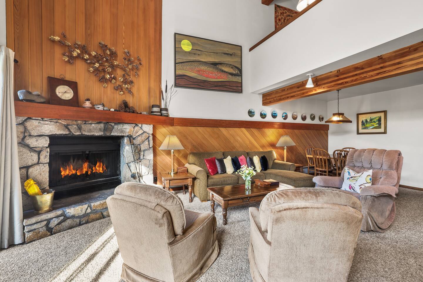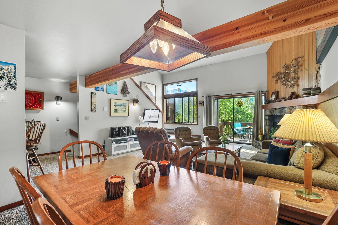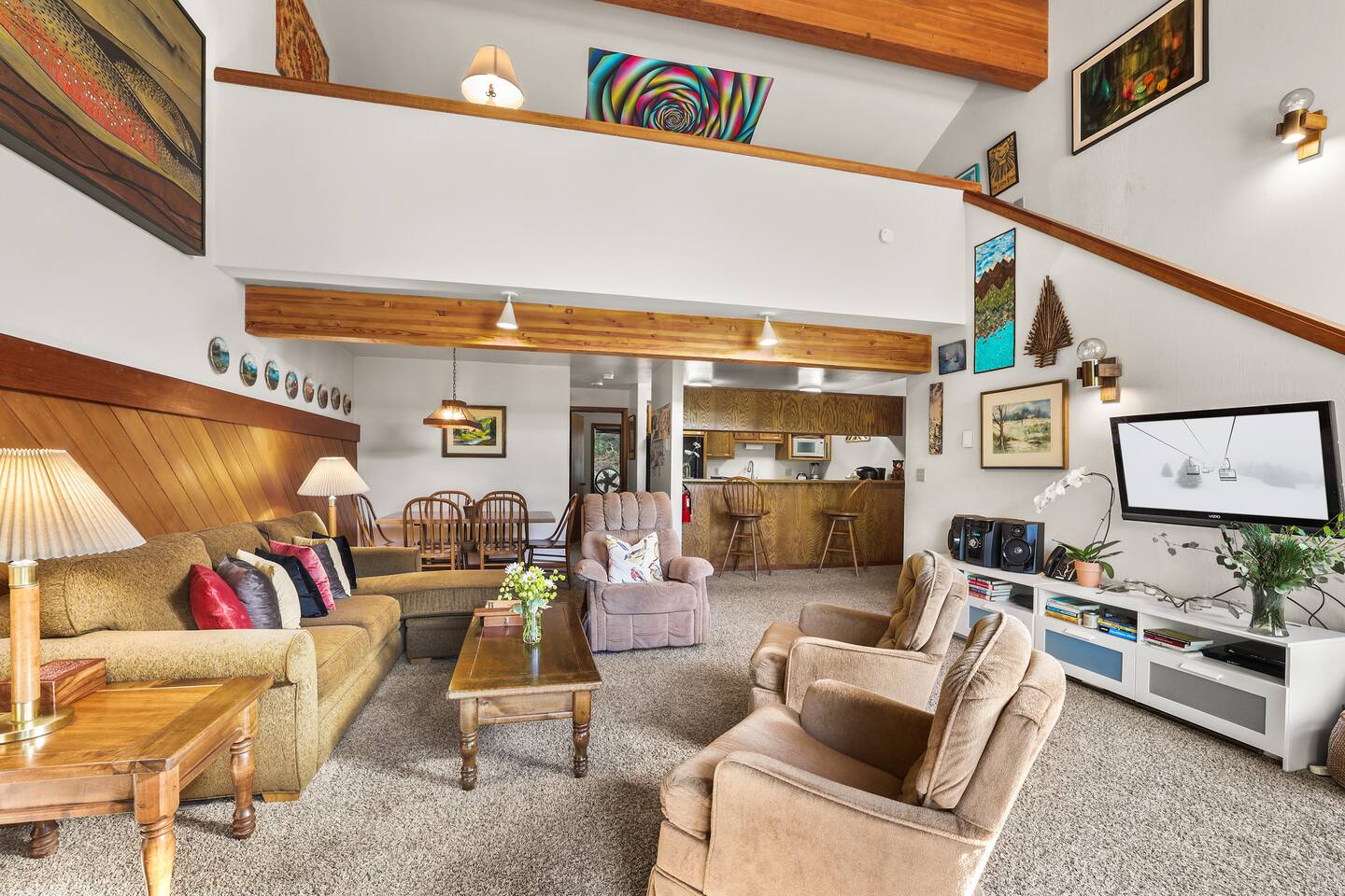 🏠 Key Features Sleeps 8: 2 Bedrooms (1 King, 6 Twin Beds) 2 Full Bathrooms Fully Equipped Kitchen with Dining Area Cozy Living Room with Fireplace and TV Loft with Board Games and Seating Private Deck with Outdoor Dining and Stunning Mountain Views 🛌 Bedrooms Master Bedroom: King-size Bed Second Bedroom: Two Twin Beds Loft: Three Twin Beds 🛁 Bathrooms 2 Full Bathrooms stocked with essentials for convenience. 🍽️ Kitchen & Lounge Enjoy cooking in a fully equipped kitchen with an open dining area. Relax in the living room with comfortable seating and a warm fireplace. Loft provides additional seating with board games for entertainment. 🌄 Outdoor Space Take in the scenic mountain views from the private deck. Perfect for morning coffee or sunset cocktails. 🚗 Proximity to Attractions Located near skiing, water sports, hiking, and golf, this home offers comfort and convenience. Guests have exclusive access to the entire property, including a private deck, living room, and loft. Free parking is available on premises.