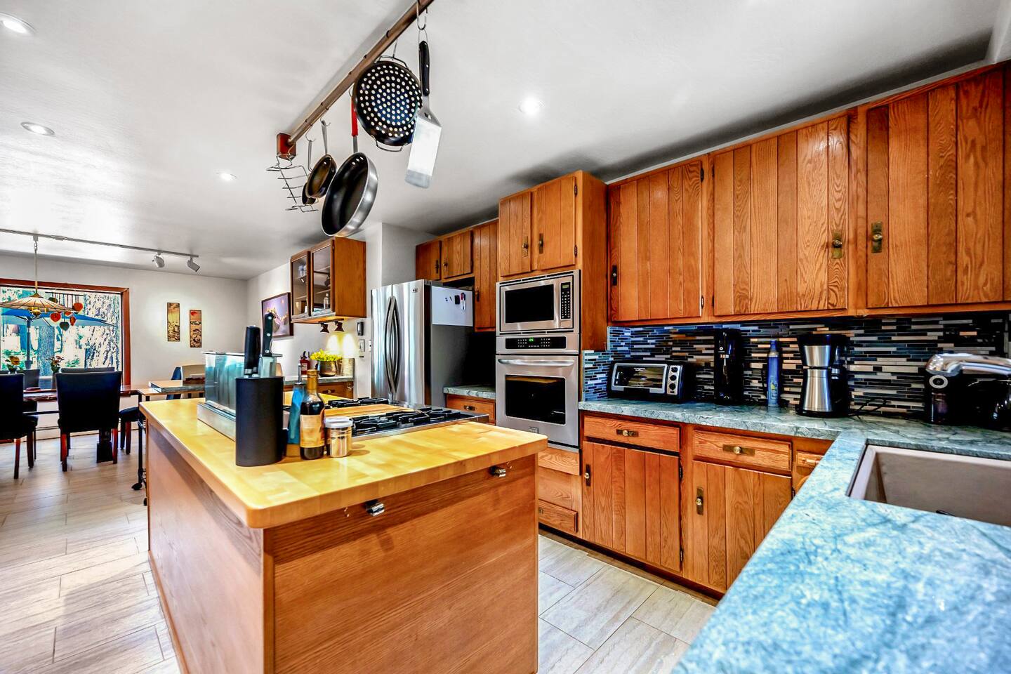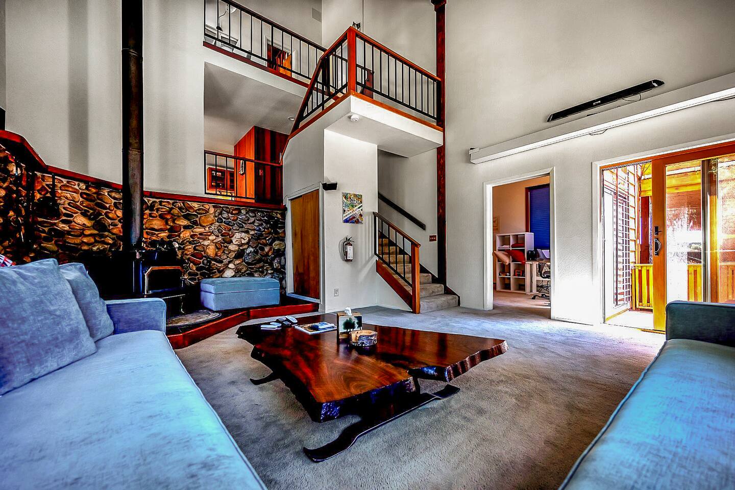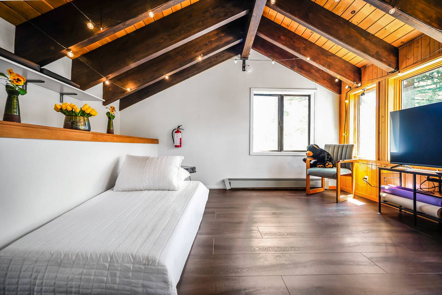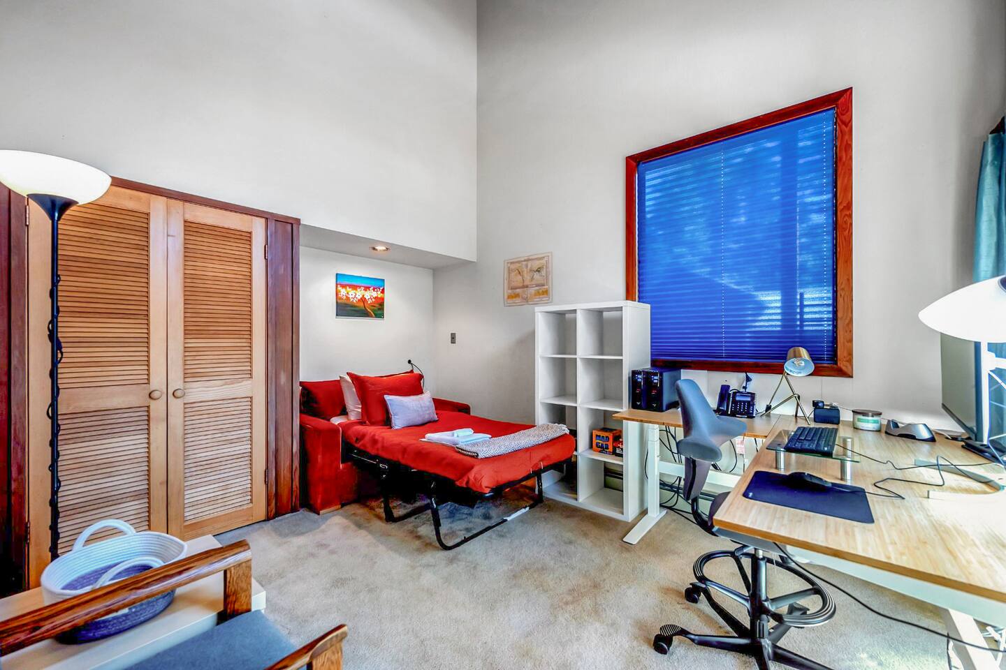 Step into this spacious, light‑filled multi‑level chalet designed for comfort and connection. On the main level, enjoy a high‑end kitchen with island, an indoor dining area, and access to two decks—one with string‑light dining and another with a BBQ grill. A full bath and laundry are also on this level. Upstairs, the primary suite offers a queen bed with a private ensuite, while a second bedroom has another queen bed and workspace. Above that, a loft fitness room features a Peloton, yoga mats, TV, and a hidden twin sofa bed. Down from the main level, unwind in the projector lounge with surround sound, an L‑shaped couch, and an office area with another twin sofa bed, plus access to a deck with patio seating. Outside via a short stairway, a private studio awaits with a queen bed, kitchenette, full bath, and workspace—perfect for extra privacy. Natural wood tones, forest views, and thoughtful details make every level feel like home. 🌟 Amenities & Features ✅ 3 queen bedrooms + 2 twin pull‑out sofa beds (loft & office) ✅ 3 full bathrooms (primary ensuite, main level, and in studio) ✅ Main kitchen with high‑end appliances + additional kitchenette in studio ✅ Multiple decks: outdoor dining with string lights, BBQ deck, and private balcony off primary and studio ✅ Fitness/yoga loft with Peloton bike, mats, and TV ✅ Large projector screen with surround sound & L‑shaped couch ✅ Dedicated office & extra workspaces throughout ✅ Laundry on main level ✅ Garage, driveway, and street parking available 📍 Location Highlights ☀️ 10 minutes to Lake Tahoe 🎿 At the base of Alpine Meadows (Ward Peak side) 🌲 Surrounded by hiking trails, forest wildlife, and peaceful views 🛍️ 15 minutes to Tahoe City shops & restaurants 🏷️ House Rules 🚭 No smoking inside or outside 🐾 No pets (allergy‑friendly home) 🎉 No parties or events—quiet neighborhood 👥 Maximum of 8 guests 🔇 Please respect quiet hours after 9 PM