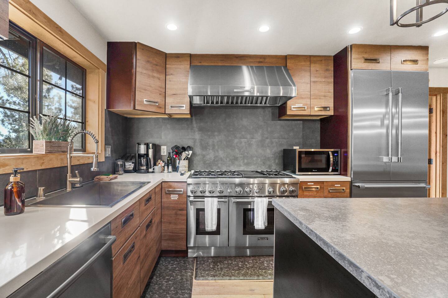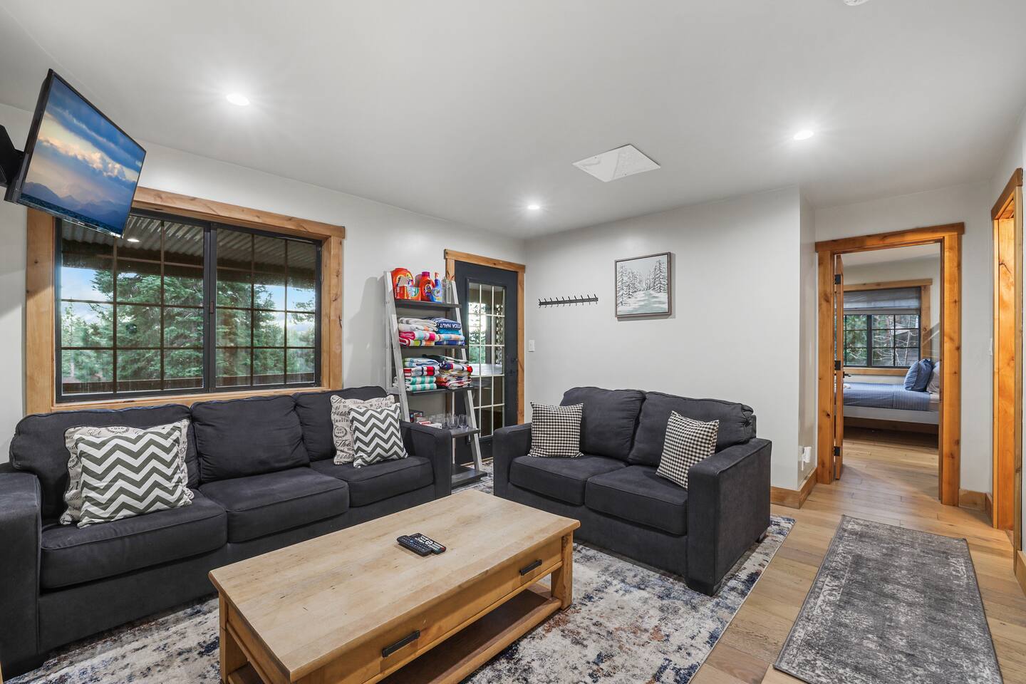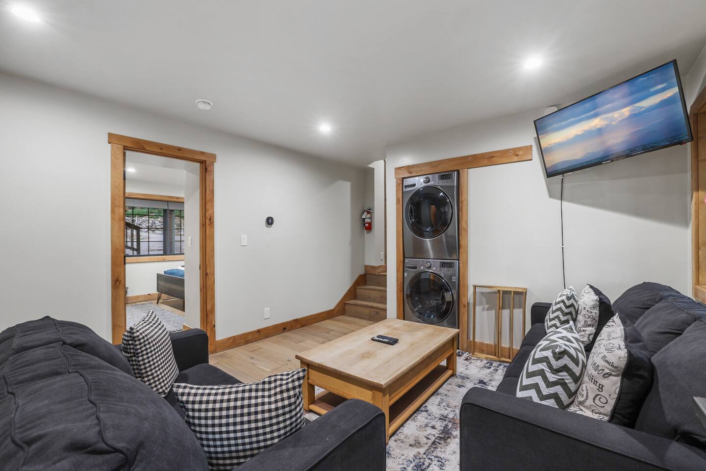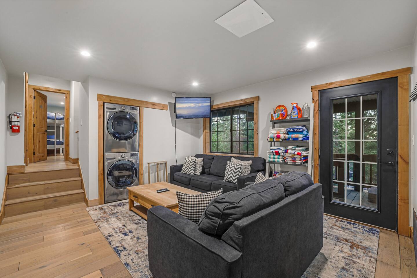 Located in a quiet residential neighborhood, this home is ideal for families and respectful groups seeking peace and privacy. In winter, the driveway and deck are professionally cleared for easy access, though 4WD is recommended during snow. Bear bins are provided for secure trash storage, and a washer and dryer are available for guest use. Please note, no pets or parties are permitted, and quiet hours are observed from 10 PM to 8 AM.