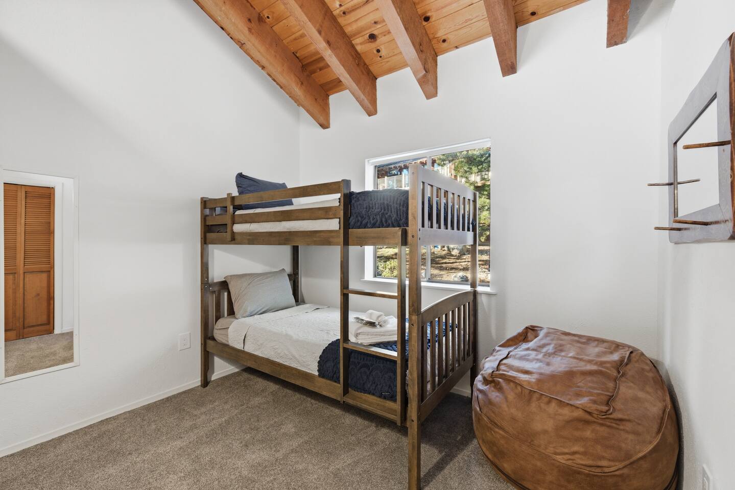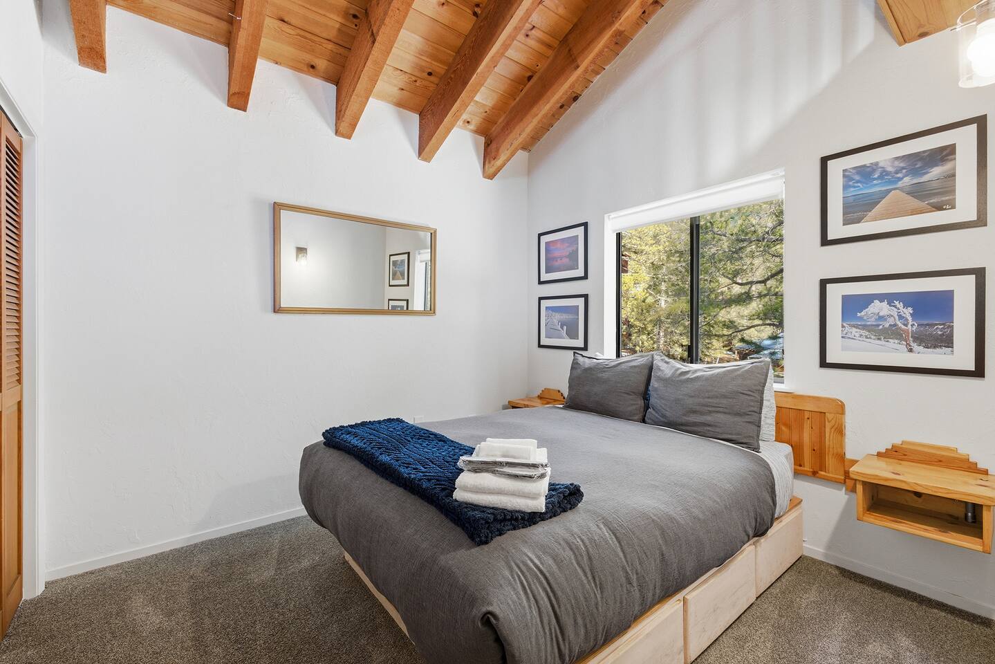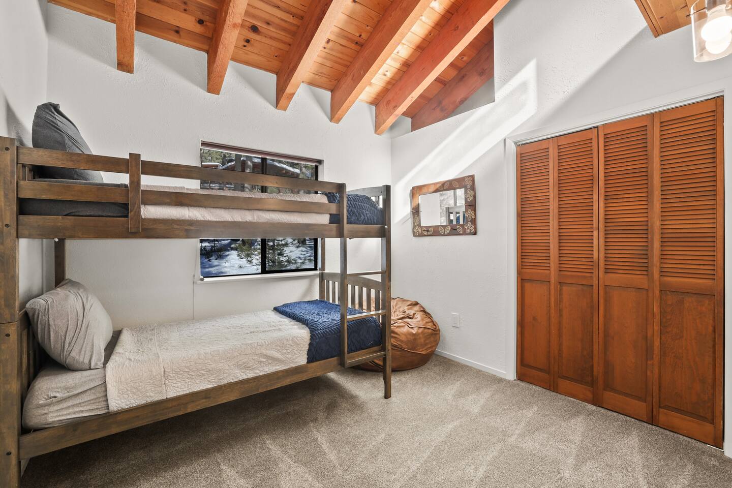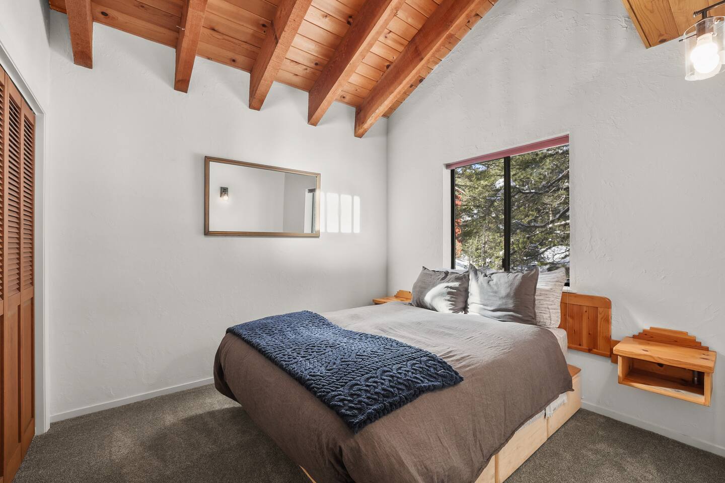 Key Features ☀ Sleeps 8 comfortably ☀ 3 bedrooms | 2 full bathrooms ☀ Less than 1 mile to Palisades Tahoe ☀ Cozy fireplace for après-ski evenings ☀ Expansive deck with snowy mountain views ☀ Large living room with vaulted ceilings ☀ Fully stocked kitchen for hearty winter meals ☀ High-speed WiFi for remote work or streaming ☀ Board games for family nights ☀ 4 driveway parking spaces ☆☆ BEDROOMS ☆☆ After a full day carving fresh powder, everyone will love having a warm, inviting place to recharge: Bedroom 1 – Queen Bed A peaceful mountain retreat with a plush queen bed—perfect for sinking in after long days on the slopes. Bedroom 2 – Queen Bed Comfortable and welcoming, this queen bedroom offers restful sleep and quiet relaxation. Bedroom 3 – Twin Bunk Bed Ideal for kids or ski buddies, the bunk room adds a fun, lodge-style feel to your winter getaway. Additional Sleeping – Living Room Two additional queen sleeping spaces in the living area offer flexibility for larger groups without sacrificing comfort. ☆☆ BATHROOMS ☆☆ Two full bathrooms make mornings easy—even on powder days. Each is fully stocked with body wash, shampoo, conditioner, plush towels, and essentials so you can focus on skiing, not packing. ☆☆ KITCHEN & RELAXING AREAS ☆☆ Start your morning with hot coffee and a big breakfast before heading to Palisades Tahoe just minutes away. The beautiful, fully stocked kitchen includes everything you need—from cookware to full-size appliances—perfect for pancakes before first chair or slow-cooked chili after sunset. The large living room is your après-ski haven. Soaring ceilings, oversized windows framing snowy pines, and a cozy fireplace create the perfect setting to unwind. Watch the snowfall outside, stream your favorite movie, or gather around for board games and laughter. This is where winter memories are made—boots by the door, cocoa in hand, and stories from the mountain shared by the fire. ☆☆ OUTSIDE SPACE ☆☆ Step onto the expansive deck and take in fresh alpine air and snowy mountain views of Palisades Tahoe. Whether you're sipping coffee in a quiet winter morning or enjoying the crisp evening air after dinner, the peaceful forest setting feels like your own private snow globe. With four driveway parking spaces, your group can arrive comfortably—even during peak ski season. ★☆ Book Today & Let Us Take Care Of You ☆★ Winter in Tahoe is magical—and this Olympic Valley retreat puts you right in the heart of it. Walkable access to Palisades Tahoe, cozy nights by the fire, and space for everyone to gather make this the perfect ski-season escape. Secure your winter dates now before they fill—powder days are waiting. ❄️