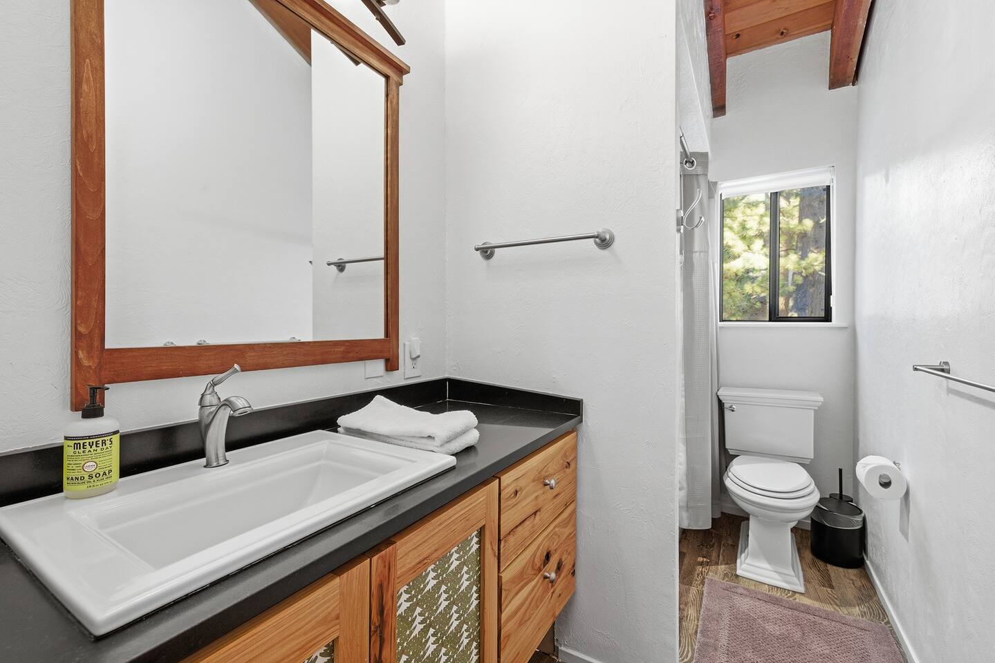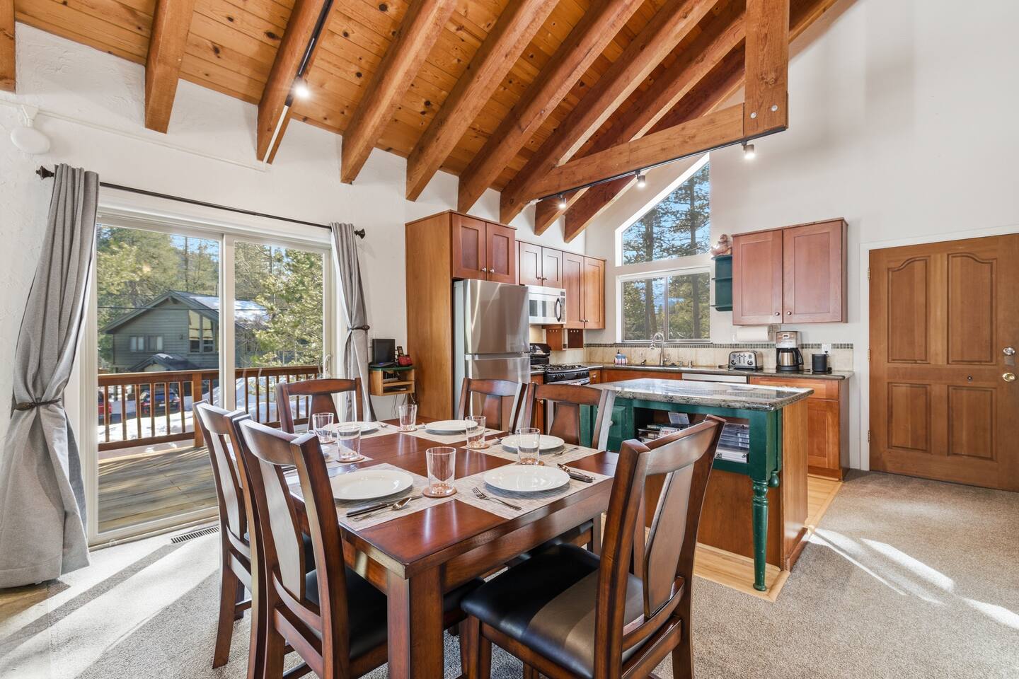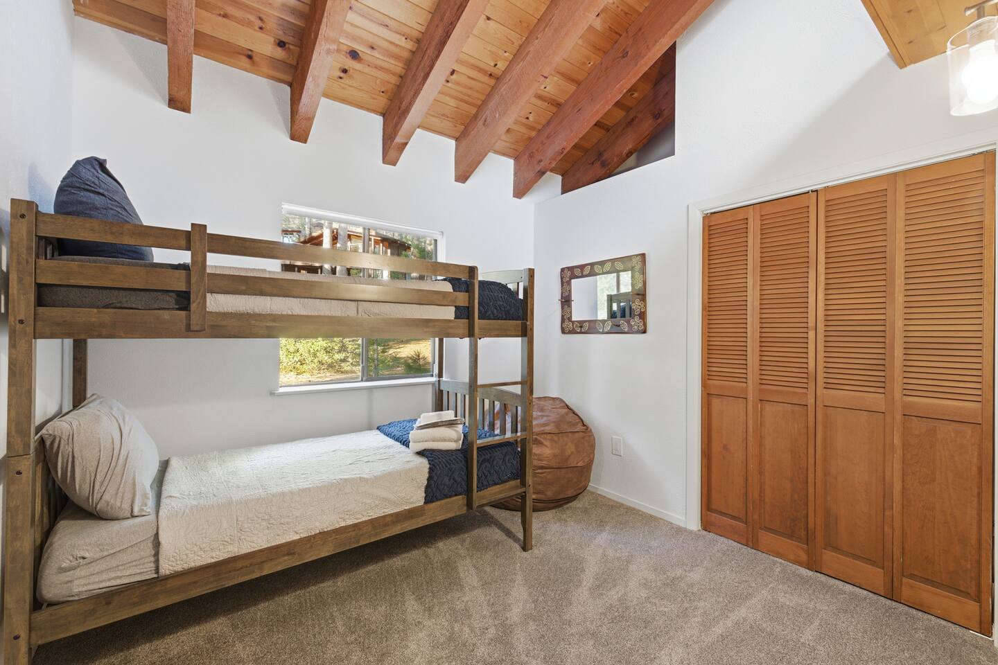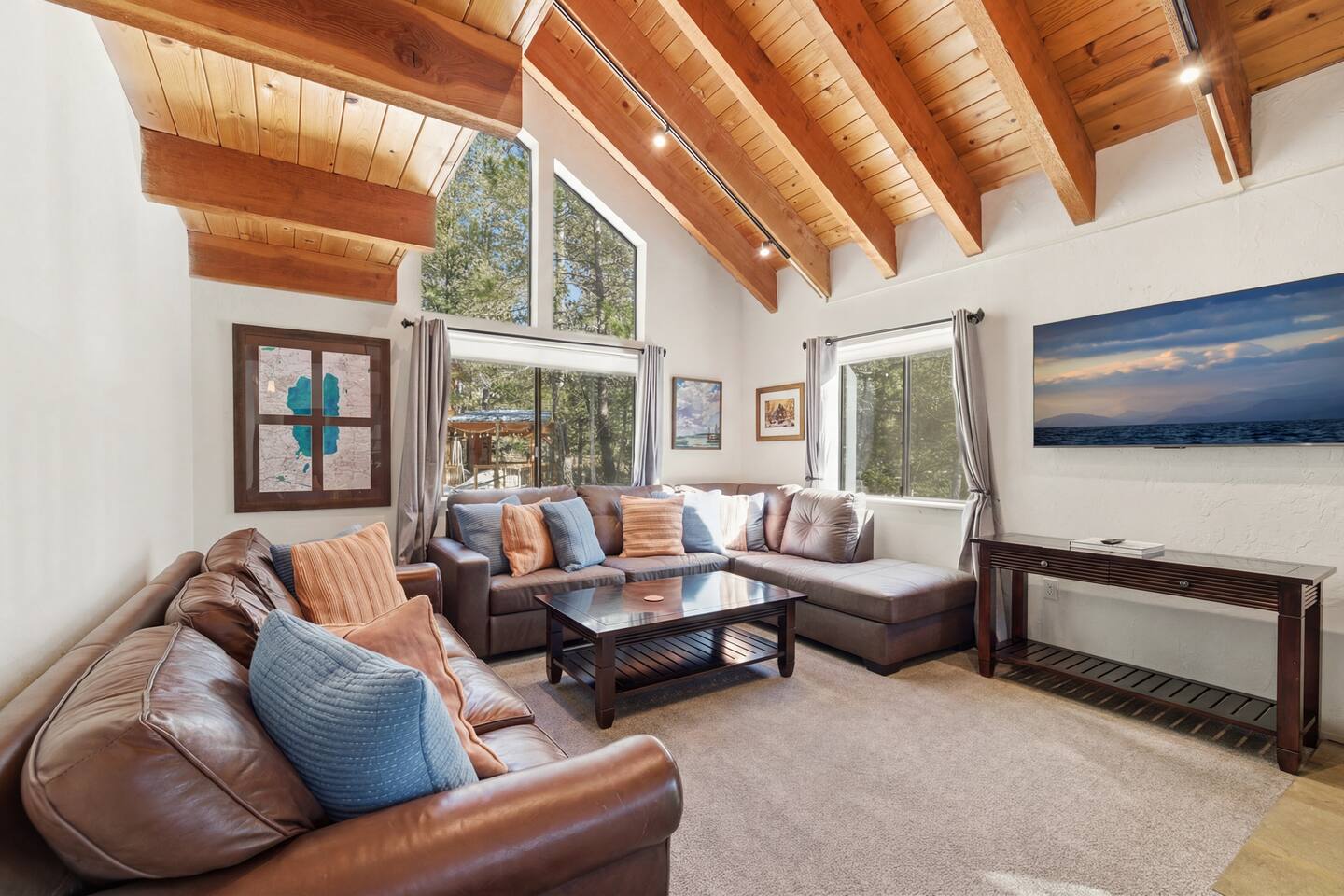 Key Features ☀ Sleeps 8 comfortably ☀ 3 bedrooms | 2 full bathrooms ☀ Less than 1 mile to Palisades Tahoe ☀ Cozy fireplace for après-ski evenings ☀ Expansive deck with snowy mountain views ☀ Large living room with vaulted ceilings ☀ Fully stocked kitchen for hearty winter meals ☀ High-speed WiFi for remote work or streaming ☀ Board games for family nights ☀ 4 driveway parking spaces ☆☆ BEDROOMS ☆☆ After a full day carving fresh powder, everyone will love having a warm, inviting place to recharge: Bedroom 1 – Queen Bed A peaceful mountain retreat with a plush queen bed—perfect for sinking in after long days on the slopes. Bedroom 2 – Queen Bed Comfortable and welcoming, this queen bedroom offers restful sleep and quiet relaxation. Bedroom 3 – Twin Bunk Bed Ideal for kids or ski buddies, the bunk room adds a fun, lodge-style feel to your winter getaway. Additional Sleeping – Living Room Two additional queen sleeping spaces in the living area offer flexibility for larger groups without sacrificing comfort. ☆☆ BATHROOMS ☆☆ Two full bathrooms make mornings easy—even on powder days. Each is fully stocked with body wash, shampoo, conditioner, plush towels, and essentials so you can focus on skiing, not packing. ☆☆ KITCHEN & RELAXING AREAS ☆☆ Start your morning with hot coffee and a big breakfast before heading to Palisades Tahoe just minutes away. The beautiful, fully stocked kitchen includes everything you need—from cookware to full-size appliances—perfect for pancakes before first chair or slow-cooked chili after sunset. The large living room is your après-ski haven. Soaring ceilings, oversized windows framing snowy pines, and a cozy fireplace create the perfect setting to unwind. Watch the snowfall outside, stream your favorite movie, or gather around for board games and laughter. This is where winter memories are made—boots by the door, cocoa in hand, and stories from the mountain shared by the fire. ☆☆ OUTSIDE SPACE ☆☆ Step onto the expansive deck and take in fresh alpine air and snowy mountain views of Palisades Tahoe. Whether you're sipping coffee in a quiet winter morning or enjoying the crisp evening air after dinner, the peaceful forest setting feels like your own private snow globe. With four driveway parking spaces, your group can arrive comfortably—even during peak ski season. ★☆ Book Today & Let Us Take Care Of You ☆★ Winter in Tahoe is magical—and this Olympic Valley retreat puts you right in the heart of it. Walkable access to Palisades Tahoe, cozy nights by the fire, and space for everyone to gather make this the perfect ski-season escape. Secure your winter dates now before they fill—powder days are waiting. ❄️