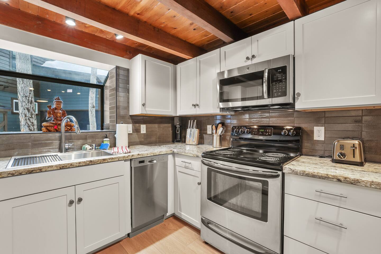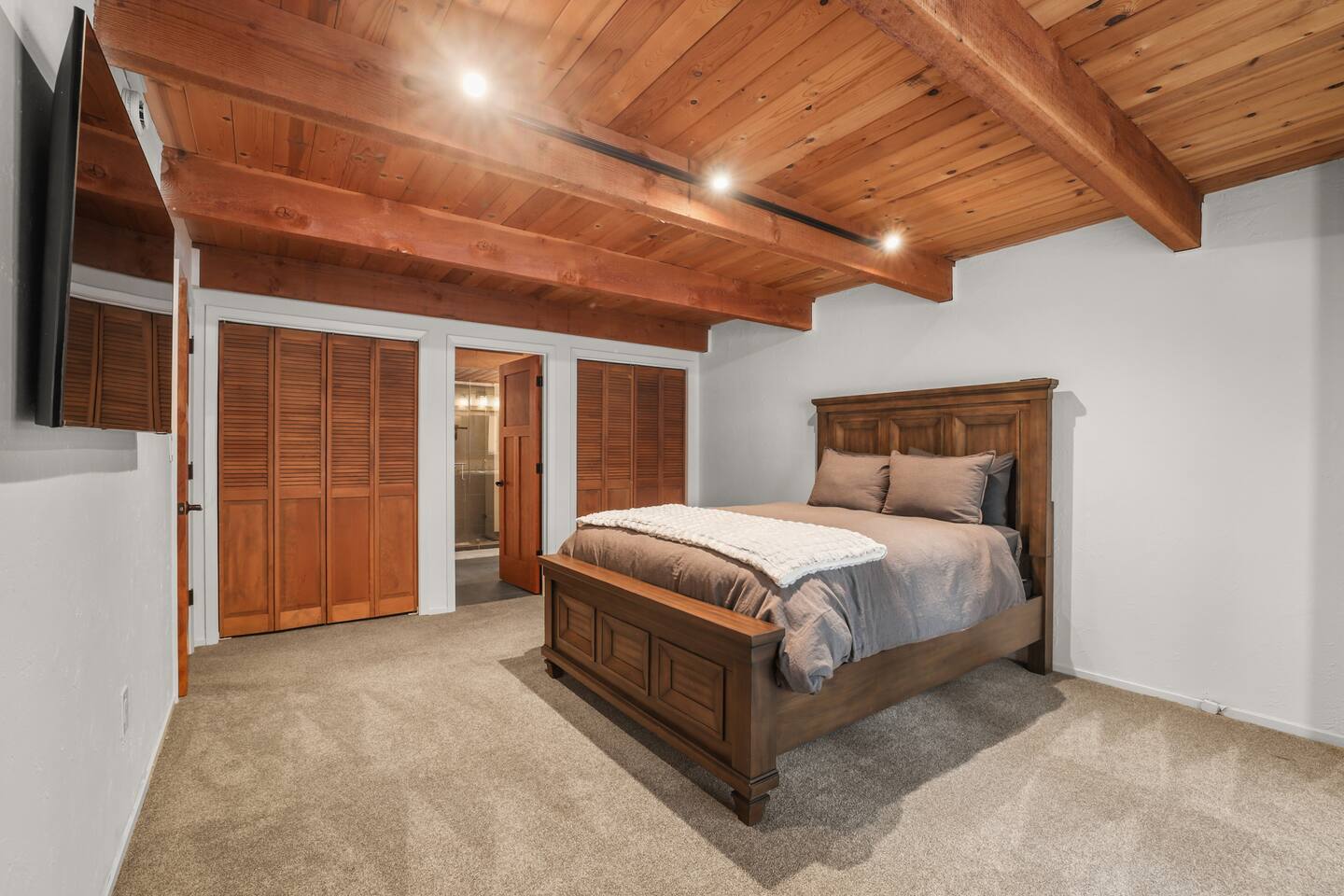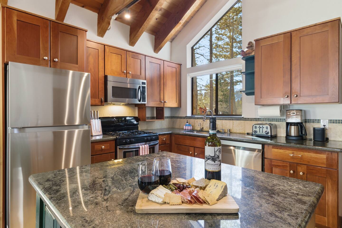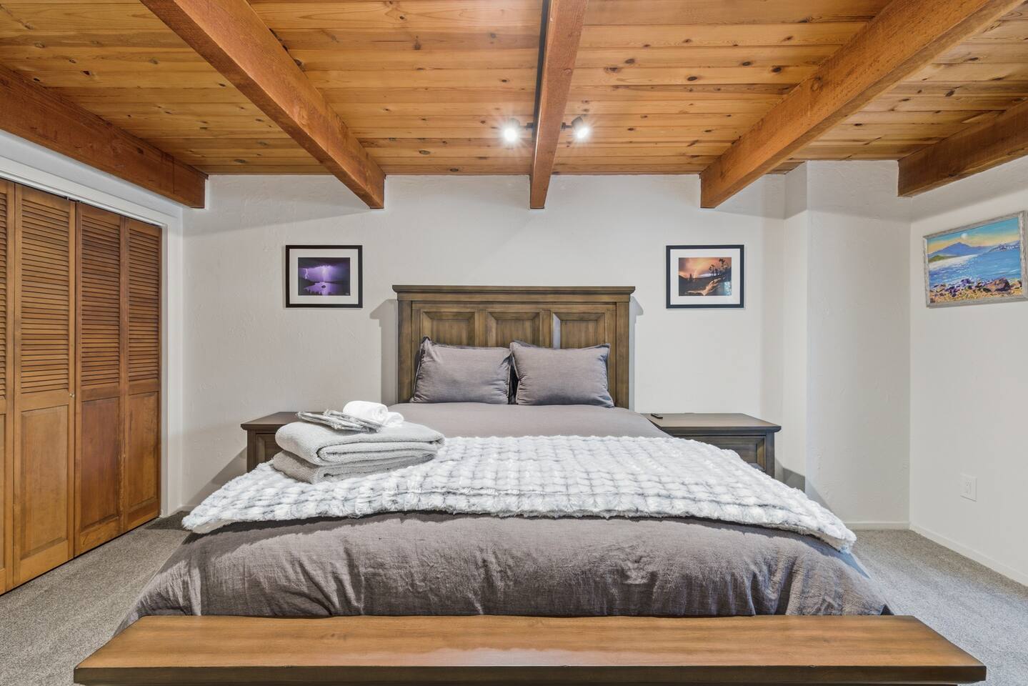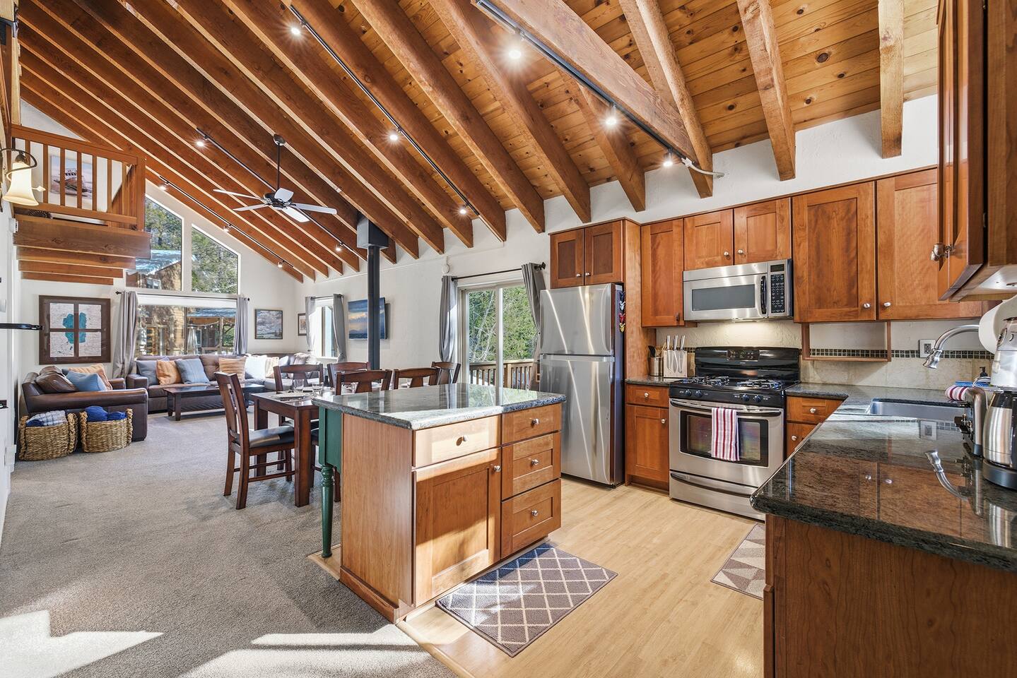 Key Features ☀ Sleeps 8 comfortably ☀ 3 bedrooms | 2 full bathrooms ☀ Less than 1 mile to Palisades Tahoe ☀ Cozy fireplace for après-ski evenings ☀ Expansive deck with snowy mountain views ☀ Large living room with vaulted ceilings ☀ Fully stocked kitchen for hearty winter meals ☀ High-speed WiFi for remote work or streaming ☀ Board games for family nights ☀ 4 driveway parking spaces ☆☆ BEDROOMS ☆☆ After a full day carving fresh powder, everyone will love having a warm, inviting place to recharge: Bedroom 1 – Queen Bed A peaceful mountain retreat with a plush queen bed—perfect for sinking in after long days on the slopes. Bedroom 2 – Queen Bed Comfortable and welcoming, this queen bedroom offers restful sleep and quiet relaxation. Bedroom 3 – Twin Bunk Bed Ideal for kids or ski buddies, the bunk room adds a fun, lodge-style feel to your winter getaway. Additional Sleeping – Living Room Two additional queen sleeping spaces in the living area offer flexibility for larger groups without sacrificing comfort. ☆☆ BATHROOMS ☆☆ Two full bathrooms make mornings easy—even on powder days. Each is fully stocked with body wash, shampoo, conditioner, plush towels, and essentials so you can focus on skiing, not packing. ☆☆ KITCHEN & RELAXING AREAS ☆☆ Start your morning with hot coffee and a big breakfast before heading to Palisades Tahoe just minutes away. The beautiful, fully stocked kitchen includes everything you need—from cookware to full-size appliances—perfect for pancakes before first chair or slow-cooked chili after sunset. The large living room is your après-ski haven. Soaring ceilings, oversized windows framing snowy pines, and a cozy fireplace create the perfect setting to unwind. Watch the snowfall outside, stream your favorite movie, or gather around for board games and laughter. This is where winter memories are made—boots by the door, cocoa in hand, and stories from the mountain shared by the fire. ☆☆ OUTSIDE SPACE ☆☆ Step onto the expansive deck and take in fresh alpine air and snowy mountain views of Palisades Tahoe. Whether you're sipping coffee in a quiet winter morning or enjoying the crisp evening air after dinner, the peaceful forest setting feels like your own private snow globe. With four driveway parking spaces, your group can arrive comfortably—even during peak ski season. ★☆ Book Today & Let Us Take Care Of You ☆★ Winter in Tahoe is magical—and this Olympic Valley retreat puts you right in the heart of it. Walkable access to Palisades Tahoe, cozy nights by the fire, and space for everyone to gather make this the perfect ski-season escape. Secure your winter dates now before they fill—powder days are waiting. ❄️
