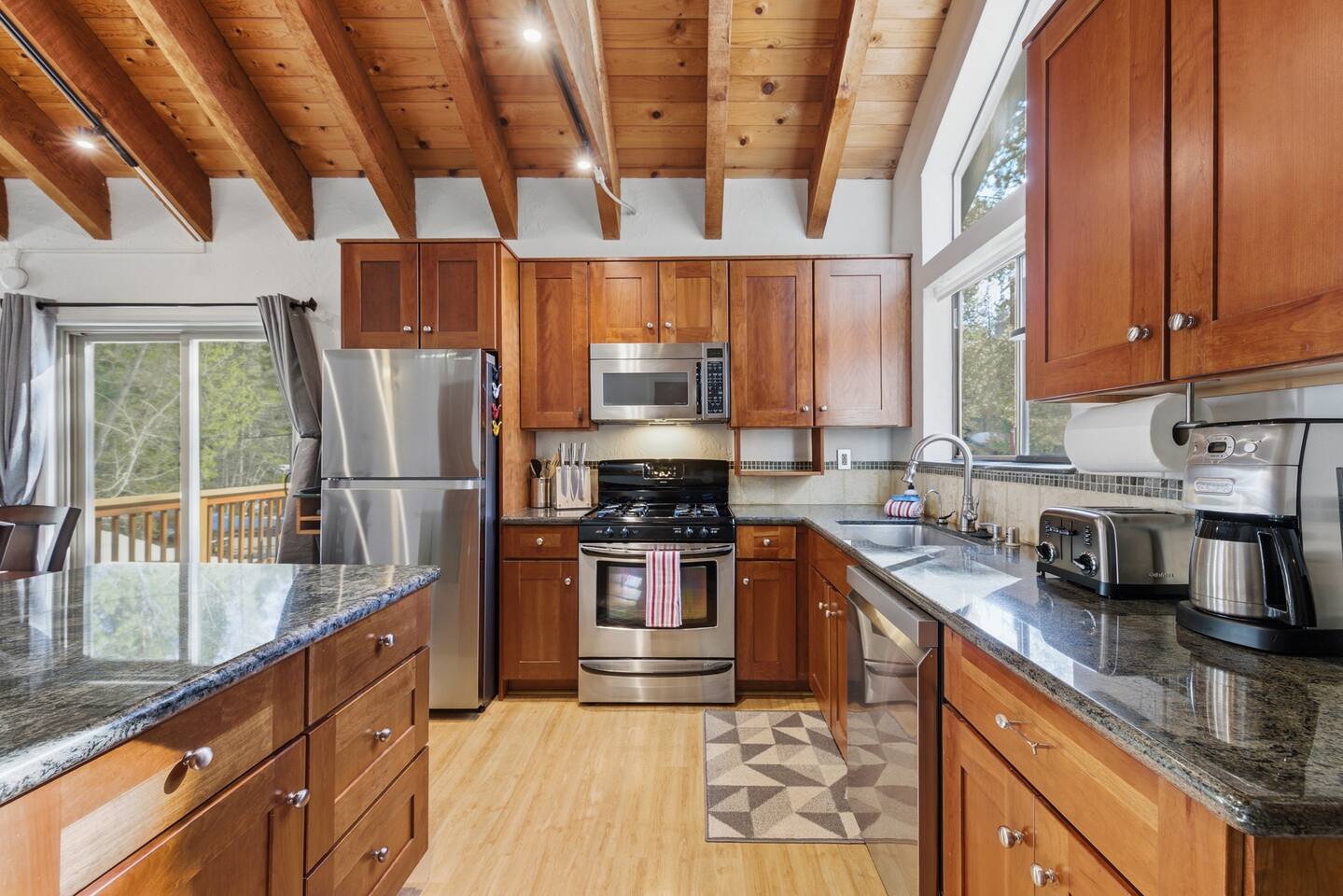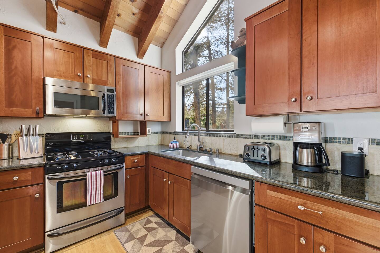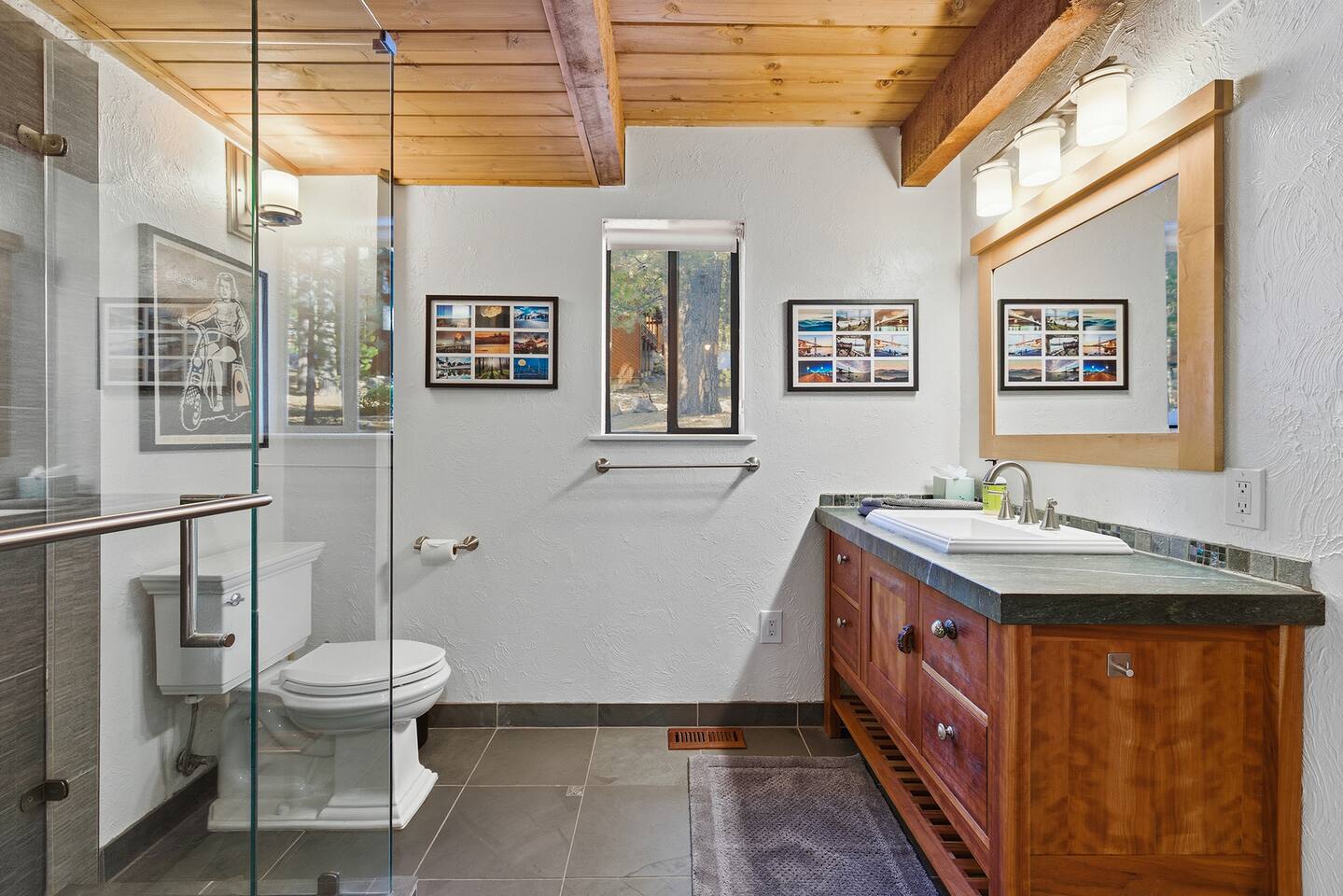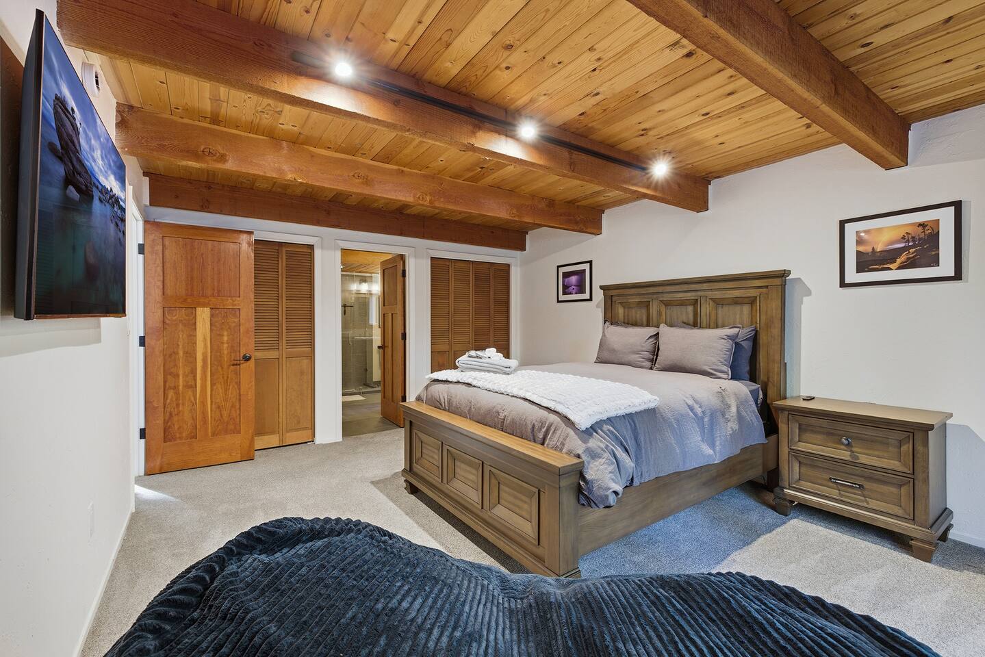 Key Features ☀ Sleeps 8 comfortably ☀ 3 bedrooms | 2 full bathrooms ☀ Less than 1 mile to Palisades Tahoe ☀ Cozy fireplace for après-ski evenings ☀ Expansive deck with snowy mountain views ☀ Large living room with vaulted ceilings ☀ Fully stocked kitchen for hearty winter meals ☀ High-speed WiFi for remote work or streaming ☀ Board games for family nights ☀ 4 driveway parking spaces ☆☆ BEDROOMS ☆☆ After a full day carving fresh powder, everyone will love having a warm, inviting place to recharge: Bedroom 1 – Queen Bed A peaceful mountain retreat with a plush queen bed—perfect for sinking in after long days on the slopes. Bedroom 2 – Queen Bed Comfortable and welcoming, this queen bedroom offers restful sleep and quiet relaxation. Bedroom 3 – Twin Bunk Bed Ideal for kids or ski buddies, the bunk room adds a fun, lodge-style feel to your winter getaway. Additional Sleeping – Living Room Two additional queen sleeping spaces in the living area offer flexibility for larger groups without sacrificing comfort. ☆☆ BATHROOMS ☆☆ Two full bathrooms make mornings easy—even on powder days. Each is fully stocked with body wash, shampoo, conditioner, plush towels, and essentials so you can focus on skiing, not packing. ☆☆ KITCHEN & RELAXING AREAS ☆☆ Start your morning with hot coffee and a big breakfast before heading to Palisades Tahoe just minutes away. The beautiful, fully stocked kitchen includes everything you need—from cookware to full-size appliances—perfect for pancakes before first chair or slow-cooked chili after sunset. The large living room is your après-ski haven. Soaring ceilings, oversized windows framing snowy pines, and a cozy fireplace create the perfect setting to unwind. Watch the snowfall outside, stream your favorite movie, or gather around for board games and laughter. This is where winter memories are made—boots by the door, cocoa in hand, and stories from the mountain shared by the fire. ☆☆ OUTSIDE SPACE ☆☆ Step onto the expansive deck and take in fresh alpine air and snowy mountain views of Palisades Tahoe. Whether you're sipping coffee in a quiet winter morning or enjoying the crisp evening air after dinner, the peaceful forest setting feels like your own private snow globe. With four driveway parking spaces, your group can arrive comfortably—even during peak ski season. ★☆ Book Today & Let Us Take Care Of You ☆★ Winter in Tahoe is magical—and this Olympic Valley retreat puts you right in the heart of it. Walkable access to Palisades Tahoe, cozy nights by the fire, and space for everyone to gather make this the perfect ski-season escape. Secure your winter dates now before they fill—powder days are waiting. ❄️