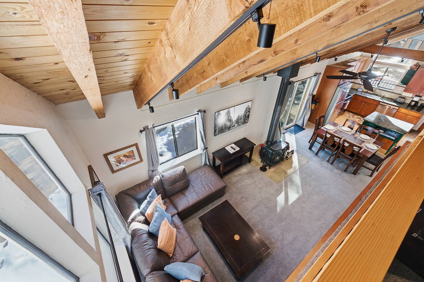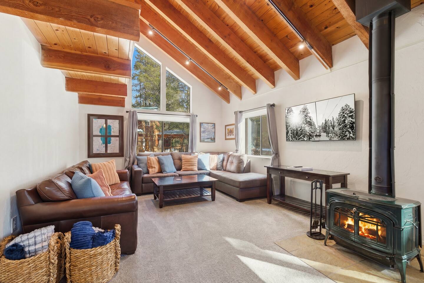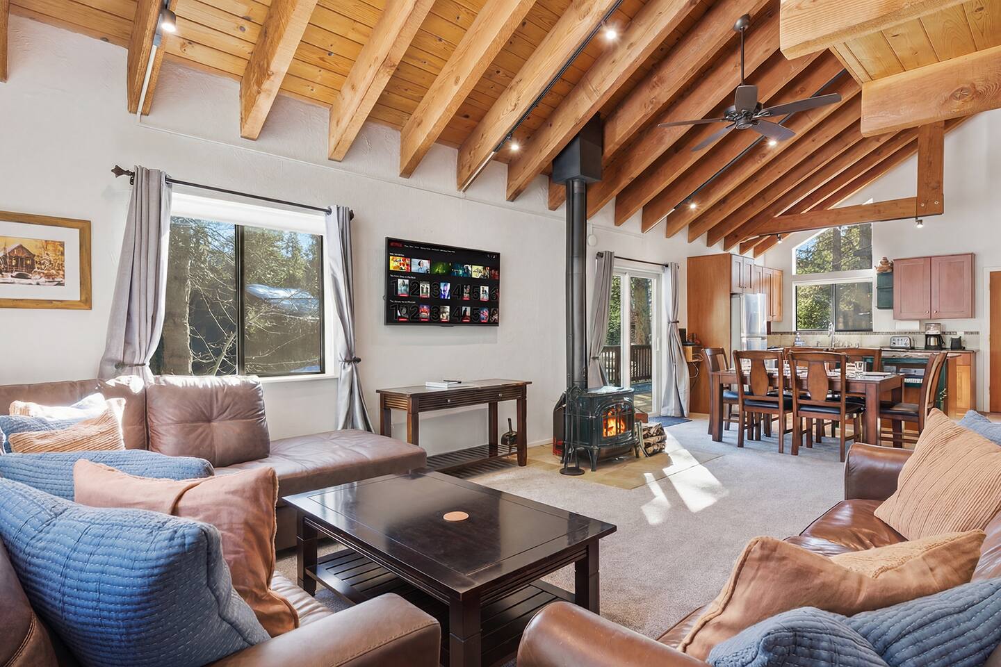 Your ultimate winter basecamp in Olympic Valley—less than a mile from Palisades Tahoe. Wake up, hit the lifts in minutes, then come home to soaring ceilings, a crackling fireplace, and mountain-view deck sunsets. With space for 8, a fully stocked kitchen, and cozy gathering areas, this alpine retreat is made for ski weekends, powder days, and unforgettable Tahoe winters.
